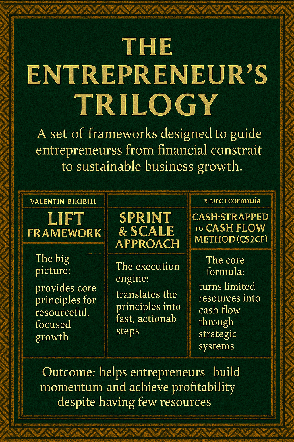 Together, these three frameworks form The Entrepreneur’s Trilogy — a complete system for turning limited resources into lasting business success: